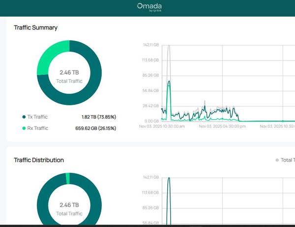 Omada SDN 통합 관리: 모든 장비의 연결 상태, 트래픽, 포트별 통계를 실시간 모니터링