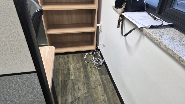 [바닥에 방치된 랜선, 업무효율성 저하]